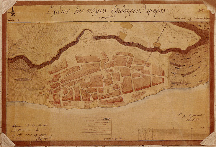 Στην Κάτω Πόλη, τα τείχη που την κλείνουν από τις τρεις πλευρές δεν έχουν αλλάξει θέση. Στο δυτικό τείχος βρίσκεται η κύρια πύλη εισόδου, έργο του 17ου αιώνα. Από τη δυτική πύλη ξεκινάει ο κύριος οδικός άξονας, η Αγορά. Παράλληλα με το θαλάσσιο τείχος βρισκόταν ένας δρόμος που ήταν σε πολλά σημεία καλυμμένος με θόλους, που ονομάζονταν "δρομικές". Άλλος ένας άξονας στη ρίζα του βράχου ένωνε το δυτικό τείχος με το ανατολικό. Κατά μήκος της Αγοράς βρίσκεται η πλατεία μπροστά από τον μητροπολιτικό ναό του Ελκομένου Χριστού (βλ. Εικόνα 5), ο οποίος ήταν αρχικά ξυλόστεγη παλαιοχριστιανική βασιλική. Ως τα τέλη της δεκαετίας του '70 βρισκόταν στο ναό μια από τις μεγαλύτερες και σημαντικότερες βυζαντινές εικόνες, η Σταύρωση, του 14ου αιώνα.